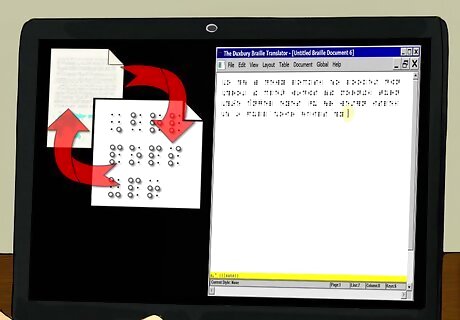 Use braille translation software. Braille translation software converts electronic files into braille. This will allow you to convert the materials provided in your teaching curriculum into braille so that your visually impaired or blind child can access the information. This software costs around $600 and can be purchased online.