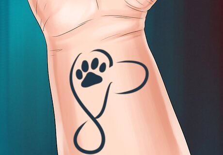 Get a tattoo to honor your dog. If you want to remember your dog forever, you may consider designing a unique tattoo to honor your dog’s life. However, you should remember that tattoos are meant to last a lifetime and can be very difficult to remove. That said, if you like tattoos and want to remember your dog, you might consider getting a tattoo to honor their life. Get a tattoo of your dog’s paw print. Take their print of your dog’s paw with some child’s ink and take it to the tattoo artist to copy. Get a tattoo of your dog’s face. Ask an artist or friend to draw your dog’s face and bring it to the tattoo artist to copy or integrate into a design. Get a tattoo of your dog’s favorite place. If you and your dog had a favorite place such as a park or a big tree on a hill, you could ask the tattoo artist to make a tattoo design of this favorite place. If this is your first tattoo, you should consider whether you want something that will be on your body forever as well as where to place it. If you are thinking about what kind of dog tattoo to get, you should consider aspects of tattoo design