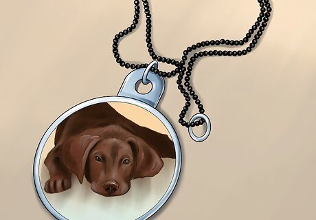 Choose or design a special piece of jewelry. You may also consider buying or designing a piece of jewelry to help you remember your dog. You could choose a pendant with a paw and have it engraved with your dog’s name. Or, you could pay a specialty jewelry company to preserve some of your dog’s ashes in a gemstone or glass pendant to wear on a necklace, bracelet, or ring.