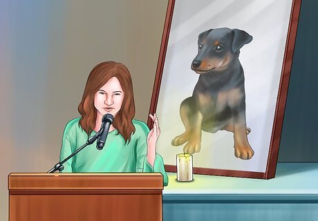 Integrate charity into your memorial service. You could tell your guests that instead of giving gifts at the service, they can donate to a local animal rescue or shelter. You could have a dog bowl at the front of the service with instructions for cash or other donations to local animal shelters. You could also have a basket at the service where you and your guests could donate used animal toys to dogs in need.