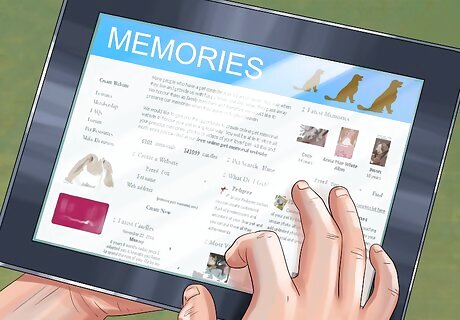 Install an online memorial. If you are in the process of moving or you have family members in different locations, you might want to install an online memorial. You could make a website in honor of your dog. Make a place on the website where family and friends can upload photos of your dog. You could also use a facebook page or a blog to host the online memorial. Invite all of your friends and neighbors to share their memories on the site.