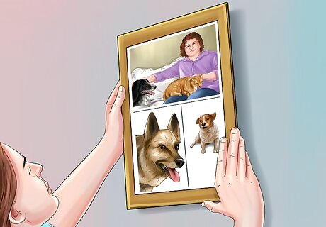 Create a photo collage with your whole family. Invite family members or friends to a photo collage party and ask each of them to bring a few photos of your dog. The photos should be analog, printed photographs so you can cut and paste them into a collage. Reflecting on the life of your dog, you can create a group collage that brings together your various memories.