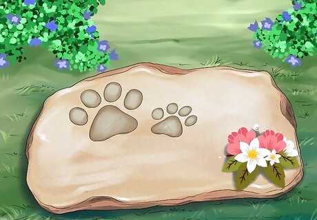 Install a garden stone. Choose a garden stone and place it in your garden to remember your dog. If your dog had a favorite area of the garden, consider placing the stone there. You could either choose a natural stone and simply place it in a specific part of the garden as a memorial, or you could get a stone engraved with your dog’s name and a poem or a short saying. You can purchased engraved garden stones online or at your garden center. You can get the text personalized to properly remember your dog.