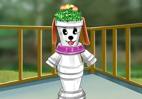 Install a flower planter in your home. Create a unique flower planter to honor your dog. A flower planter will bring life into your home at a time of mourning and can be personalized to honor your dog. If you do not have room in your backyard but like the idea of a living memorial, this option may be right for you. You could make a plaque with your dog’s name and attach it to the planter or use your dog’s food and water bowls to make the planter. You could also make a flower pot with a mosaic pattern