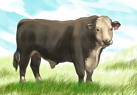 Study the characteristics of the breed. Note the following: Colouration: Black Herefords are black and white. However, do not immediately think that Black Herefords are the same as Holstein cattle, because they are not. BH's have the same colour patterns as their Hereford-breeding does, with the white face, stockings on their legs, belly, brisket, tail switch, and sometimes the crest. It is also not uncommon to have some BH's that have additional black patches on their faces. Body type and characteristics: BH's have the same body type as Herefords and Angus cattle do: blocky and square, but not overly muscular like Charolais are. Naturally, bulls are more bigger and muscular than cows are. Head characteristics: Again, the head is very similar to the Hereford, with the same long broad face and broad muzzle to accommodate for their excellent foraging ability. However, unlike the Hereford breed, Black Herefords are predominantly polled. Some may have scours, but the breed, as influenced by their Angus genes, is naturally polled. Other characteristics: BH's have the characteristics of both the Hereford and Angus breeding, with great carcass merits along with a great ability to be highly efficient on pasture. This breed is also known for its great mothering ability, calving ease and longevity, milking ability, fertility, and all-around adaptability to different environments. Black Herefords are a fairly new breed (a Made-in-America breed), with the American Black Hereford Association first founded in 1994. The first Black Herefords qualified for registration was recorded in 1997. The BH breed didn't receive official international designation by the National Association of Animal Breeds until 2003, and in 2005, ABHA created their own EPDs for registered bulls, cows and heifers. The American Hereford Association has never recognized the Black Hereford breed as a part of the Hereford breed due to the fact that they are not "true Herefords," due to the black colour.