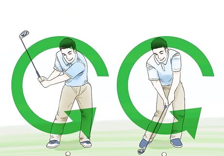 Perform a slow takeaway. Start your takeaway by turning your non-dominant shoulder away from the ball. Do this as smoothly as you can, making sure each movement is deliberate. The speed of your takeaway will set the tempo for the entire swing, so take it slowly and, if the backswing doesn’t feel right, start over.