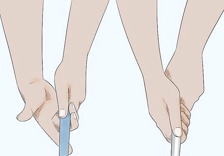 Grip the club firmly, but keep your wrists loose. While getting ready to swing, keep a strong, firm grasp on your club. Doing so will give you the control and power necessary to hit the ball successfully. However, at the same time, keep your wrists loose, relaxed, and maneuverable. This will allow you to swing the club less like a stick and more like a whip, something that, once you get your tempo down, will lead to a speed increase.