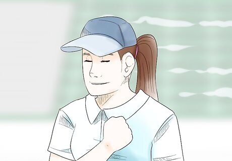 Make each action deliberate to keep yourself relaxed. One of the most common causes of poor golf tempo is tension. If you’re nervous before hitting the ball, or if you don’t think you can make the shot, there’s a good chance your tempo will be thrown off. To counter your nerves, try to calm yourself down before addressing the ball. Make each action deliberate, and remind yourself that: You are a great golfer and are more than capable of hitting the ball. Nerves are the only thing standing between you and success, not talent.