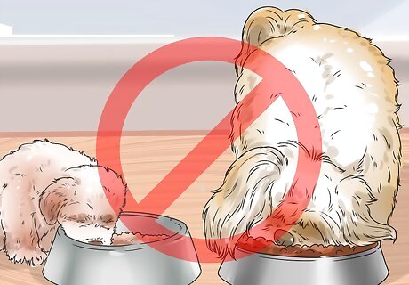 Don't feed your dog around other pets. Sometimes an older dog will refuse to eat due to an uncomfortable feeding situation, such as the presence of other pets. This is especially true if there is another dog that is aggressive. Try feeding your dog in a space free from other dogs and distractions, such as a comfortable, closed off room.