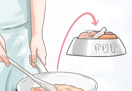Cook dinner for your dog. Cooking a meal for your dog occasionally can entice it to eat. The smell of food cooking in the kitchen can improve a senior dog's appetite. Try giving your dog a home-cooked meal of boiled chicken breast and rice. You can also feed your senior dog a homemade meal of boiled lamb and barley. Avoid cooking for your pet more than once a week, as home-cooked food is not nutritionally complete for a senior dog.