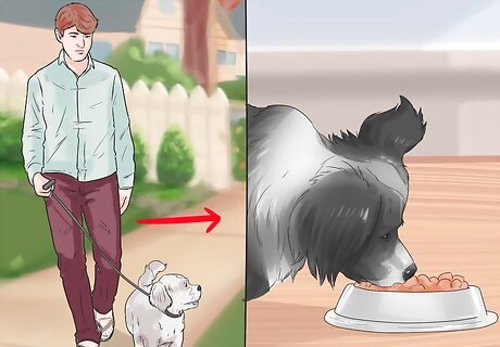 Walk your dog before dinner. A great way to improve your older dog's appetite is to increase its activity level. Try taking your dog out for a walk before mealtime. You can also engage in other types of activities with your dog, such as fetch or Frisbee.