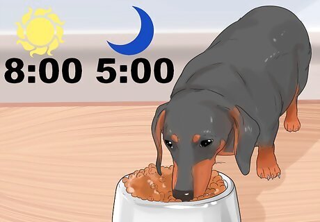 Set a regular feeding schedule. You can improve your older dog's appetite by feeding it at the same time every day. Most senior dogs should eat twice a day, or as recommended by your veterinarian. For example, try feeding your older dog at 8:00 in the morning and again at 5:00 in the evening. If your dog doesn't consume all its food right away, you can leave it out for the dog to eat as it desires.