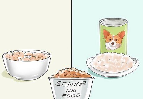Try a senior dog food. As your dog ages, it might have more trouble digesting food. Try feeding your dog a food that is specially formulated for seniors. These age-appropriate formulations are generally higher in fiber, which will improve gastrointestinal health. This can help improve your dog's appetite. Switch to the new food gradually over five days, with a mixture of 20% new food and 80% old food on the first day. Feed your dog 40% new food and 60% old food on the second day, and 60% new food with 40% old food on the third day. On the fourth day, feed your dog 80% new food and 20% old food. By day five, you should be feeding your dog 100% new food.