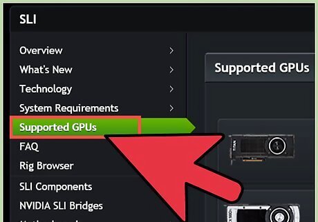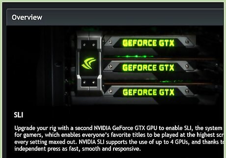 Obtain SLI-compatible cards. Almost all recent NVIDIA cards are capable of being installed in an SLI configuration. You will need at least two cards of the same model and memory to be installed as SLI. The cards do not need to be the same manufacturer, just the same model and memory amount. The cards do not need to be the same clock speed, though you may see a decrease in performance output if the speeds are not the same. For best results, use two identical cards.