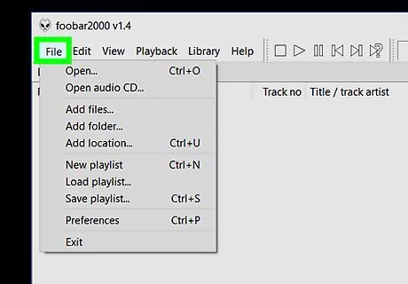 Open the Foobar2000 app on your computer. The Foobar icon looks like a white alien. You can find it on your Start menu or on your desktop.