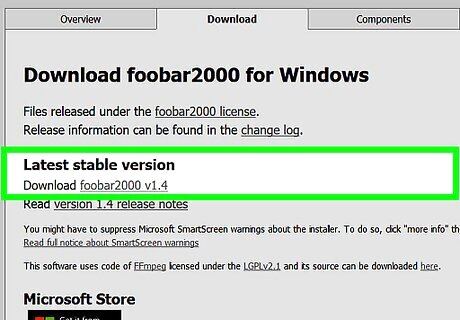 Download and install Foobar's free encoder pack. You will need to install the encoder pack in order to edit and join audio files. Go to www.foobar2000.org/encoderpack in your browser. Click the download link under "Latest version" at the bottom of the page. Run the encoder setup file and install the encoder pack.
