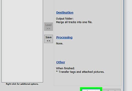 Click the Convert button. You can find this button in the lower-right corner of the Converter Setup window. It will automatically join all your audio files, and merge them into a single FLAC. You can find your final FLAC file in your selected destination folder. If you haven't specified a folder on the Destination menu, you'll be prompted to select a saving location here.