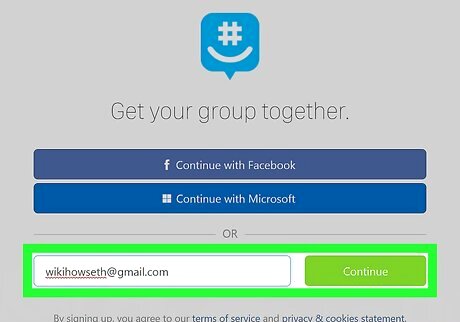 Enter your email address and click Continue. You can also click "Continue with Facebook" or "Continue with Microsoft" to log in with your Facebook or Microsoft account.