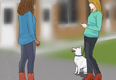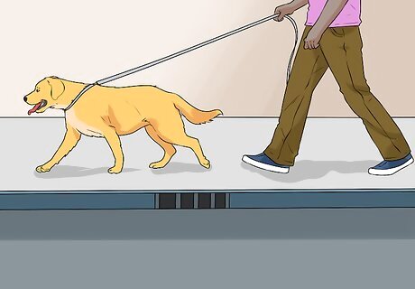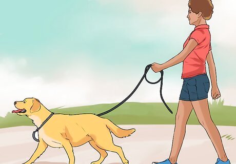 Train your dog for loose leash walking. Your dog needs to learn to follow your lead on its leash. Never allow it to pull you. If it does pull on its leash, stop and command it to sit. After getting your dog to sit, consider walking in the opposite direction. Over time, your dog should learn that rushing ahead of you will only make it harder for it to get where it wants to be.