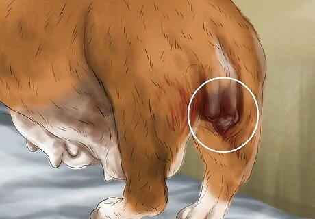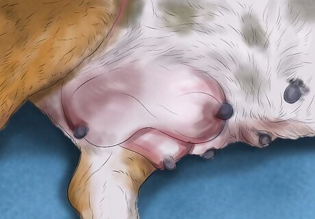 Check her teats. Her teats can also develop infection, so it's important to keep an eye on them after she gives birth. Look for swelling, redness, irritation, and pain. Also, the milk should flow freely, and it should be white, not yellow, red, or green. If you notice these symptoms, you should take your dog to the vet immediately, as it indicates an infection called mastitis. Think about grinding the puppies' nails down, too—they can cause some significant irritation to the mom's nipples.