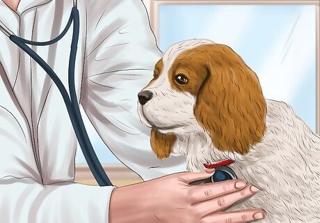 Look for signs of low calcium. Another problem dogs are in danger of developing after giving birth is a condition called eclampsia, where the dog's body is not pulling enough calcium from the bones to keep up with the demand of milk. In turn, the mother doesn't get the calcium she needs to survive, though usually it doesn't affect the puppies. This condition is particularly common in smaller breeds, and it usually develops in the first month or so after giving birth. Symptoms of eclampsia include strange behaviors from your dog, such as loss of interest in her puppies, disorientation, and nervousness. Your dog may also whine, pant rapidly, and have stomach problems. She may also have a fever. It will begin to affect her muscles, so she'll walk funny. She may have tremors. About 8 hours after symptoms she begin, she may lay on the floor with her legs extended straight out in front of her. Visit a vet if you see these symptoms.