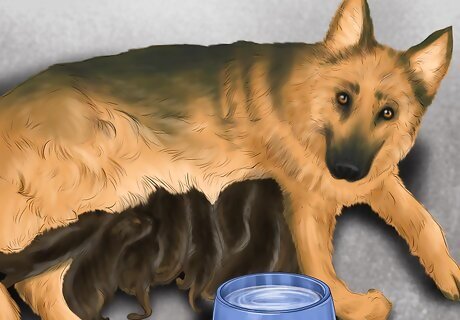 Supply plenty of fresh water. Your dog will be dehydrated and tired after giving birth, and she'll need plenty of water to help her recover and to start producing milk for her puppies. Therefore, make sure she has access to fresh water at all times while nursing.