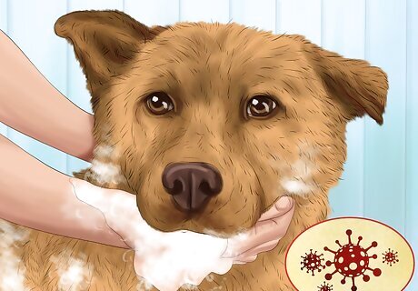 Clean up the area. After birth, you need to do a bit of cleaning up. Take out anything that was soiled by the birthing process. Put in fresh, clean bedding for the pups and the mother, as that will help decrease her chance of developing an infection.