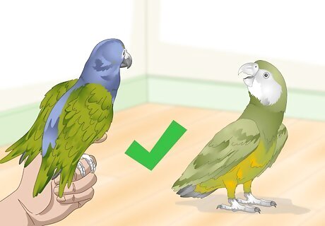 Keep more than one parrot. Senegal parrots need a lot of social interaction, either with their owner or with other birds. If you have the space, means, and desire to keep a second parrot, your birds can keep each other company and thus require a bit less attention from you. It is recommended to house the birds separately until you form a strong relationship with each of them. Keep no more than 2 birds per cage. A cage for 2 parrots should be twice the size of a cage for one.