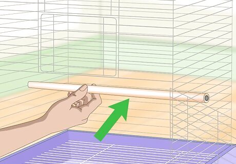 Add perches the cage. Senegals also need perches to hang out on. Include at least two perches in your Senegal’s cage: one lower to the bottom near the food, and one up high for roosting. You can select perches made of soft wood that your Senegal will enjoy chewing on. 5/8 to 1 inch (1.59 to 2.54 cm) perches are the ideal size for Senegals. Perches can be swinging or stationary. Senegals enjoy both. When the perch becomes worn, broken, or splintered, replace it with a new perch.