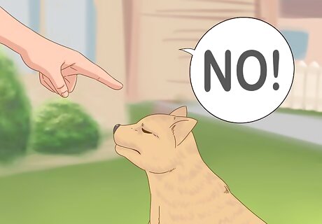 Train your dog. If the dog in question belongs to you, you may be able to train it not to enter the garden. If your dog has never had any kind of training, you might consider formal obedience training for your pet. Only let your dog near the garden when you're able to supervise and correct its behavior. Praise your dog when it does not enter the garden and provide a treat. Scold your dog with a firm "No" when it enters the garden. Avoid yelling or physical threats. Be consistent and try to remain patient throughout this process.
