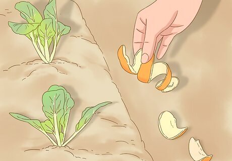 Place potatoes or orange peels around the garden. Certain food items—such as semi-rotten potatoes and orange peels—are repulsive to dogs. By placing these foods around your garden, you can effectively deter dogs from entering the space. Use the peal of one orange and/or one semi-rotten potato for every 2 square feet of your garden. Replace these when have visible rotted away. Shred orange peels into chunks or slices, and sprinkle these around your garden. Leave potatoes in your pantry for approximately three weeks, then place whole potatoes around your garden.