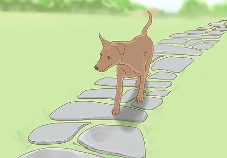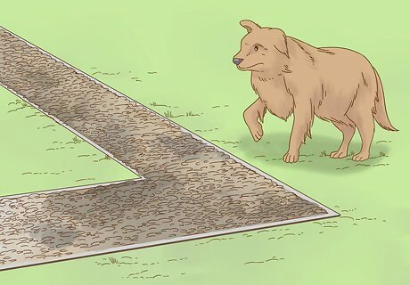 Build a dog path. If your dog frequently walks on your garden on its way someplace else, you may be able to provide a better path for it! If you are open to reorganizing your garden, you can create a path right through the middle. Otherwise, create a path for your dog nearby. For a pleasant dog-friendly path, you may want to use: Soil/sand mixture. Outdoor carpet. Step stones.