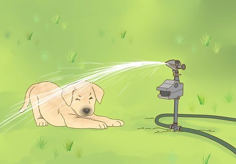 Install a motion-activated sprinkler. Motion-activated sprinklers can be programmed to spray water anytime an animal enters the garden. These sprinklers can deter not just dogs, but cats, deer, and other unwanted animal intruders. Motion activated sprinklers range from $35 to over $100. A popular choice is the “Orbit 62100 Yard Enforcer Motion Activated Sprinkler,” available on Amazon for $60.