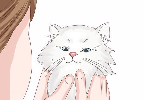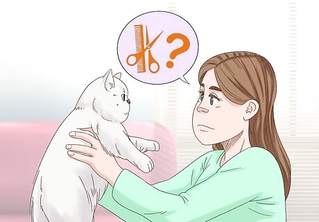 Decide if your cat needs the hair trimmed. Longhaired cats, especially those of the Persian variety, often deal with excessively long hair that needs to be trimmed regularly to avoid certain irritations and other problems. Even the hair around their eyes needs to be trimmed in some cats because contact with hair can irritate the eyes and even scratch the corneas. Over time, this can cause a lot of pain for the cat and even lead to other serious health problems, including permanent loss of vision. If your cat’s hair looks like it has any contact with the surface of its eyes whatsoever, you need to consider trimming this hair.