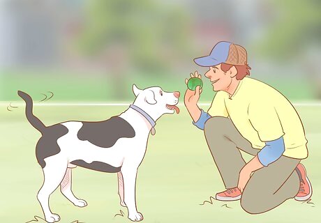 Play fetch at the park. All you need to keep your dog entertained for hours at the park is a tennis ball or Frisbee. Throw the ball across a field, and tell them to “go fetch” it, or teach them to catch the Frisbee in their mouth. Your dog may also enjoy a game of tug-of-war. It’s a fun and easy way to wear your dog out and burn off any excess energy.