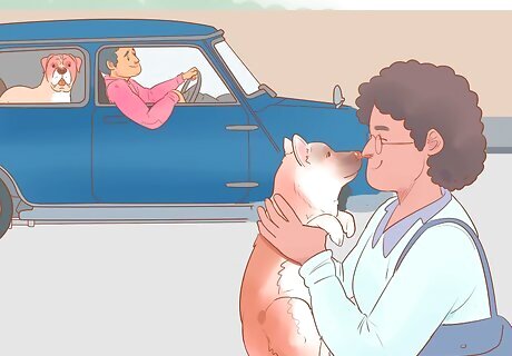 Plan ahead to keep your dog entertained when traveling. Just like humans, dogs get tired of being in a car for too long. If you take your dog along on a weekend getaway or a longer vacation, then you may need to find ways to keep him entertained. Stop at rest stops for walks and bathroom breaks. Most rest areas along highways offer places to walk dogs, and some even have fenced-in areas to allow your canine friend a safe place to run around. Bring along some new toys as well. Before you venture out on a trip with your dog, buy some new toys and mix them in with some old familiar favorites. A chew toy is a good option.