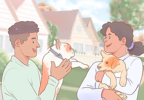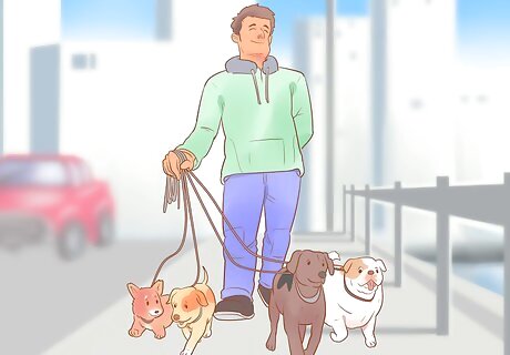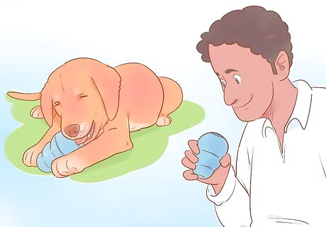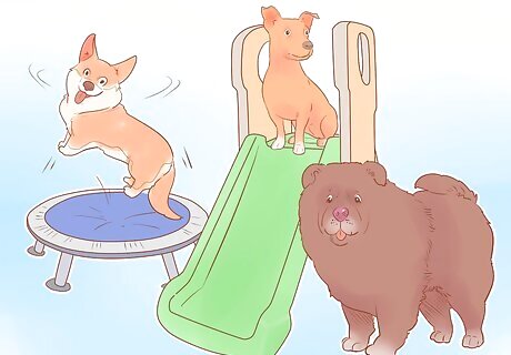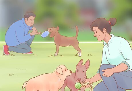 Make a play date. Dogs (especially puppies) are very social creatures, and need plenty of time to interact with their own species. Make sure that you find a play companion for your pup who is around the same size and temperament as your dog, so that both dogs stay safe, and enjoy their time together. Introduce your dog to new buddies on neutral territory (while on a walk or at a park), so that the dogs don’t feel like they need to defend their home turf from stranger dogs.