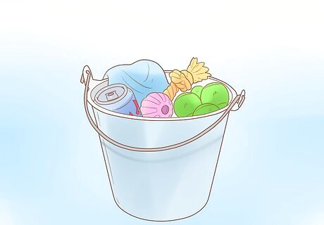 Make a busy bucket for your dog. Find a sturdy aluminum or plastic container and fill it with toys and treats for your dog to discover during the workday. Layer the treats and toys with old hand towels, so that your dog has to dig through to find treasures. To keep them entertained with the bucket from day to day, add new toys that your dog has never seen before every now and then. Try giving your dog puzzles they have to solve in order to get a treat, for instance. You can also try hiding treats throughout your home so the dog can hunt for them while you're out.