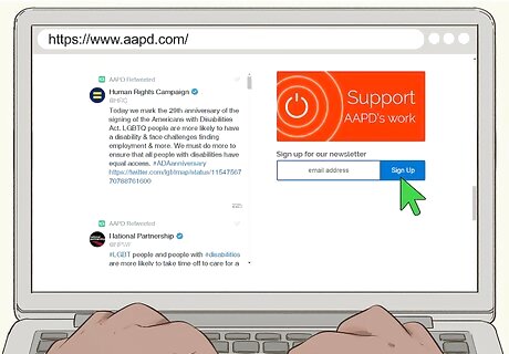 Subscribe to updates from organizations that protect disability rights. The law on disability rights often changes. Even if you don't become a member, many organizations have newsletters or blogs that you can sign up for to keep abreast of recent topics in disability rights. When laws are challenged in the courts, the judges' interpretations of the law may affect situations that happen to you. Nonprofit organizations that protect disability rights monitor the progress of these lawsuits and can let you know if something happens that affects your rights under the law. In addition to legal updates, organization newsletters can also inform you about meet-ups or other events the organization may be holding in your area.