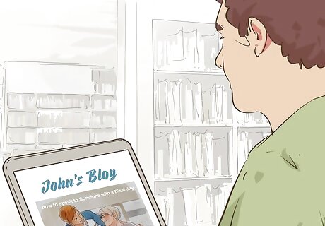 Share your personal experiences on a blog or podcast. A blog or podcast can be a wonderful way to share your own experiences as a disabled person and talk about disabled rights. Neither of these options requires very much initial investment. Both give you a platform to use to increase public awareness of disabilities. Send links to nonprofit organizations that advocate for disability rights or post them on disability forums. You can also share information about your blog or podcast on your own social media to get the word out about your project.