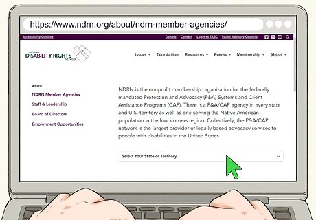 Identify disability rights attorneys near you. Disability rights attorneys typically give free initial consultations and can help you if you run into a problem that you can't resolve on your own. There are also disability rights legal clinics in many areas that can provide you with additional resources to help you learn and exercise your rights. The National Disability Rights Network (NDRN) is an agency that promotes Protection and Advocacy Systems (P&As) as well as Client Assistance Programs (CAPS) nationwide. To find a program near you, go to https://www.ndrn.org/about/ndrn-member-agencies/ and select the name of your state or territory from the drop-down menu.