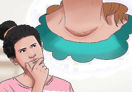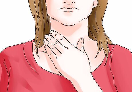 Check for symptoms of goiter. The main symptom of goiter is the goiter, the enlarged thyroid gland that you can feel. Most individuals with goiter have no other symptoms. The thyroid is a butterfly-shaped gland in the front portion of the neck, just below the Adam’s apple and just above the collarbone. If you can feel this gland, then you may have a goiter. If the goiter grows large enough, it may also cause the following symptoms: Swelling or tightness in the neck Breathing difficulties Swallowing difficulties Coughing Wheezing Hoarseness of voice