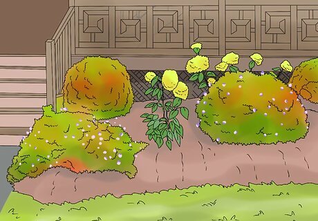 Use plants with different leaf shapes and textures to add variety to your yard. Combine beds of smaller, flowering plants with leafier, upright plants to create visual interest. Put plants with different leaf shapes next to one another so they contrast and stand out. Even if they have different leaf shapes and textures, avoid putting plants that are the same color next to one another. Otherwise, you won’t be able to easily tell them apart. For example, you may put lamb’s ear, which has smooth round leaves, next to more textured plants like ferns, that have large, textured leaves.