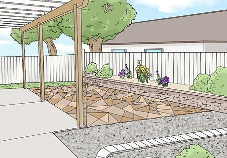 Build decorative garden walls to make raised planting beds. Plan out where you want to build your walls. Dig a trench that’s twice as deep as the width of your walls. Fill the trench in with sand and rocks to make a sturdy and level base. Lay the first layer of stones on top of the sand, making sure each of your stones is level. As you build your walls up, fill in the back side with rocks, gravel, or another well-draining medium. Plant shrubs and flowers in the area closed off by your wall to make your plants seem taller.