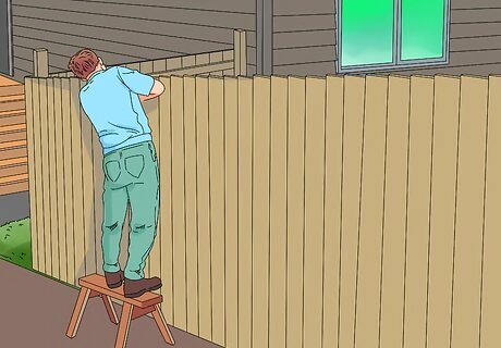 Consider putting in a fence if you want privacy. Measure along the perimeter of your yard so you know how much fencing you need to buy. Use wooden panel fences that are about 6 feet (1.8 m) tall so it’s not easy for others to look or climb over. Hedges are tall shrubs that make great natural barriers between your and your neighbor’s yard. Check with your city to see if you can build a fence in your neighborhood.