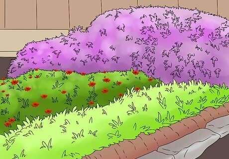 Vary the heights of your plants to add visual interest. Use shorter flowering plants around the inner edges of your landscaping. Plant tall decorative shrubs or grasses behind them so they don’t block your view of your shorter plants. Put tall plants in corners to add another visual pop! Mix decorative grasses, like fountaingrass or feather reedgrass, with ground cover plants, like lamb’s ear or impatiens.