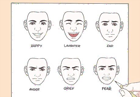 Use a facial expression chart to practice identifying emotions in others. Start by looking at photos of facial expressions on the Internet. Then, look for those facial expressions in other people. Try to figure out what the people around you are feeling. When you feel comfortable, ask them if you’re right about how they feel. Say, “You look really sad right now. Do you want to talk about it?” If they aren’t sad, they’ll likely say something like, “Thanks, but I’m not sad.” You can find a facial expression chart by searching online.