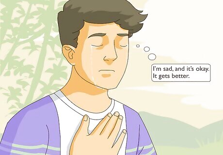 Acknowledge your grief. The relationship has, in fact, died. Therefore, it is okay to feel as though someone precious has died. You are entitled to feel your loss. Ride the waves of grief without getting pulled under or lost in them. Don’t fight them. Recognize them for what they are: waves of emotion that will take you through some strange currents for a season all the while giving your heart space to heal. Grief is part of healing. Even if no one else in your life knows what you are experiencing, you can still acknowledge your own pain to yourself. When you feel down, take a moment and say, “I’m sad, and it’s okay. It gets better.” Reader Poll: We asked 691 wikiHow readers who’ve been through a breakup, and 74% of them agreed the best way to move on is by giving yourself time to grieve. [Take Poll]