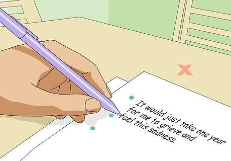 Seek professional help if you need it. If you are concerned that you may be grieving unhealthily or that you are depressed, you may want to seek professional help. A therapist can help you understand your grief and whether you are becoming depressed. Read “How to Get Rid of Depression” to better understand depression. It can be useful to talk with a therapist even if you’re not depressed. A therapist can help you understand how to work through your grief.
