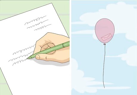 Write a letter to the person. Write a letter to your loved one. Then, let it go to signify your own mental choice to let him go. Some people find it cathartic to burn their letter, signifying a definitive end. Or you may prefer something more considerate of the place this person will always hold in your heart. This may be more appropriate if you are letting go because this person has passed. You might prefer placing your message in a helium filled balloon and setting it free. Another option is creating a sky lantern with words of love written on it and sending it off as though mailing your loved one.